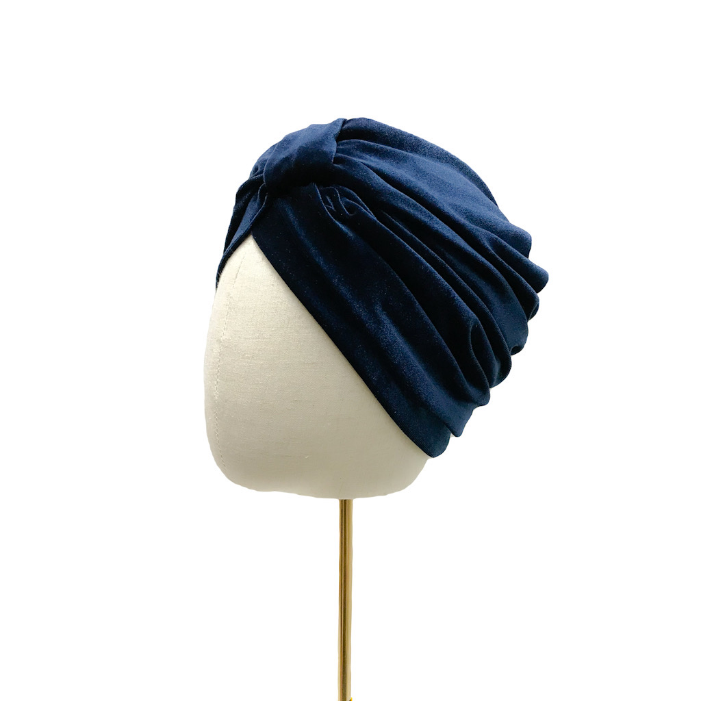 Turbaani Cassie, tummansininen sametti M (58-60cm)