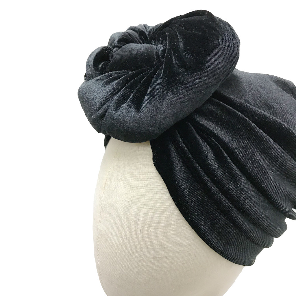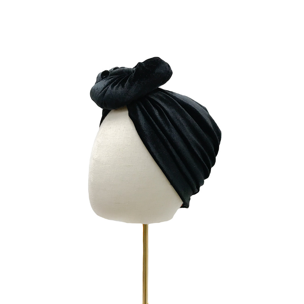 Turbaani Greta, musta sametti S (55-57cm)